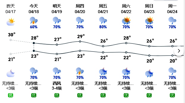 惠州日?qǐng)?bào)訊 (記者周智聰)近兩日天氣晴好、炎熱,最高氣溫超過(guò)30℃。惠州市氣象臺(tái)預(yù)計(jì)4月18日開(kāi)始降雨趨于頻繁,又是雨雨雨的天氣啦!