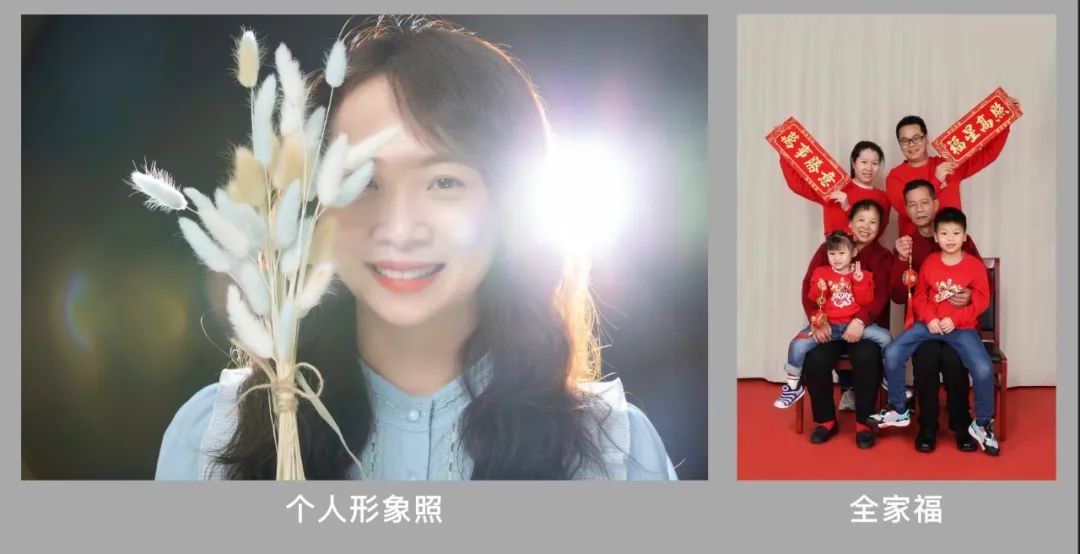 可選個(gè)人形象照、全家福,如您選擇拍攝全家福,只需一人報(bào)名即可,具體圖片樣式參照下圖: