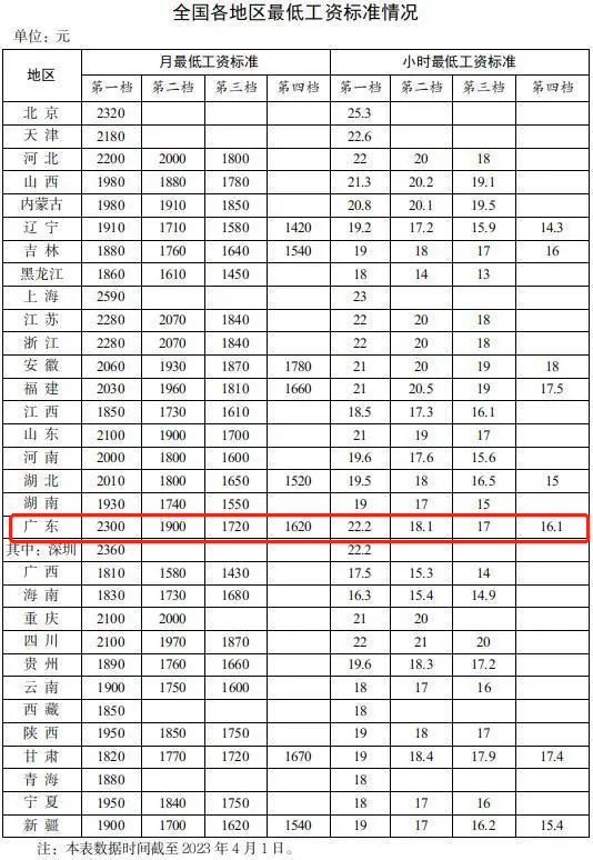 廣東目前最低工資標(biāo)準(zhǔn)情況