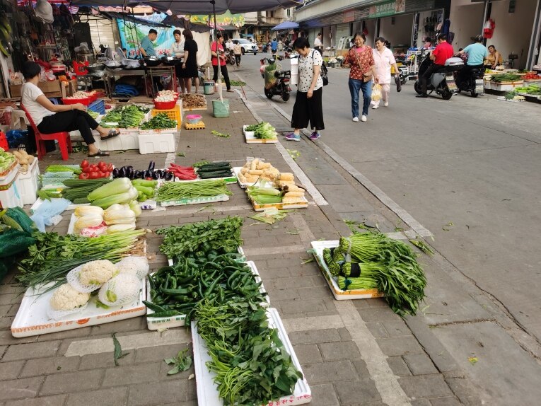 隨后,記者在惠城區(qū)河南岸街道斑樟湖一橫街看到,幾名商販把蔬菜水果等擺在機(jī)動(dòng)車道上。當(dāng)時(shí)正值上下班高峰,陸續(xù)有汽車、電動(dòng)車避讓通過(guò)。
