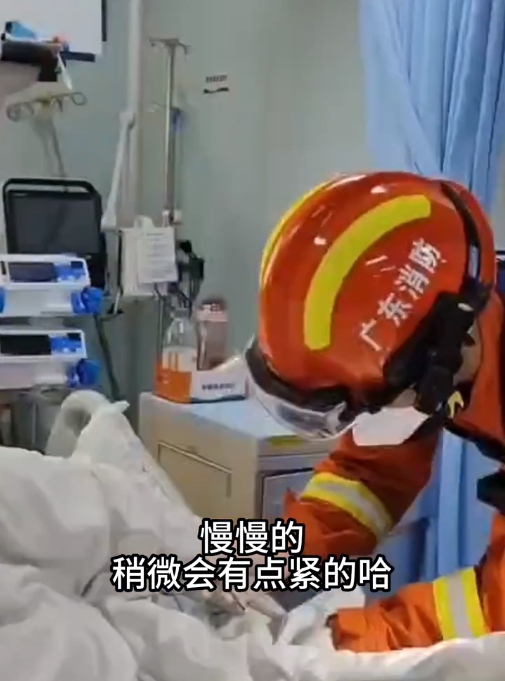 12時33分消防救援人員到達醫(yī)院,立即按照醫(yī)護人員的防護要求穿戴好一次性頭套、鞋套進入重癥監(jiān)護室。據(jù)了解,該名患者因生病期間手指浮腫導(dǎo)致其佩戴的戒指無法取下,影響了治療進度。