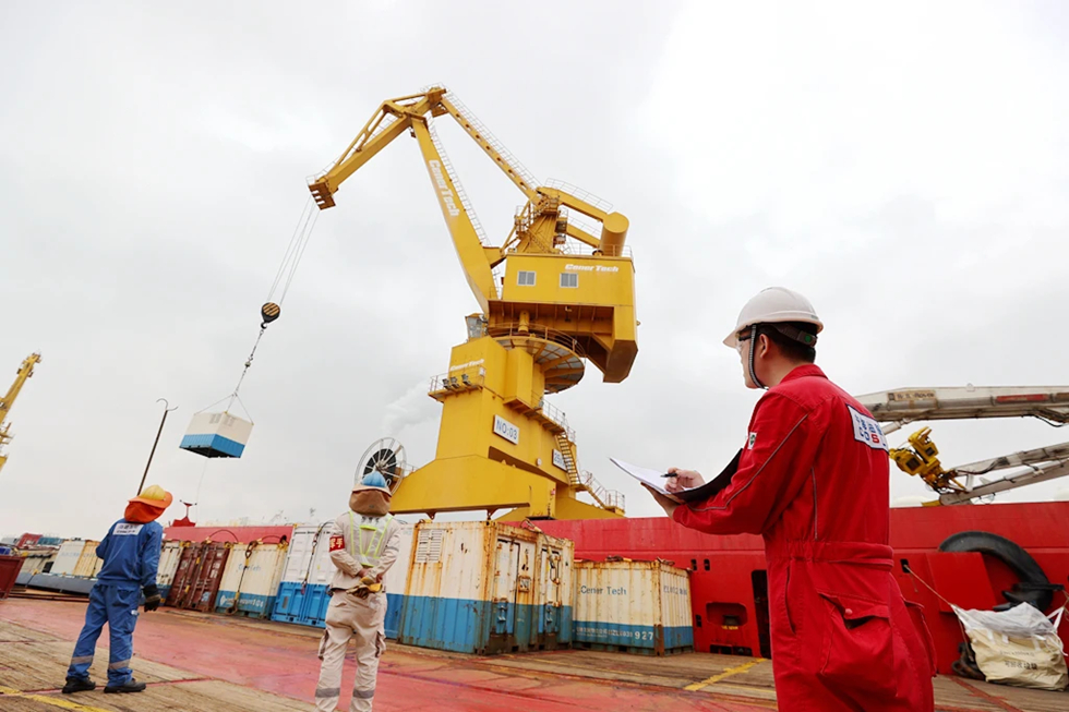 4月23日晚9時(shí)20分許,“海洋石油681”船舶裝載好滿滿一船物資后,從中海石油惠州物流基地離港出發(fā),向中國(guó)南;葜萦吞镞M(jìn)發(fā)。