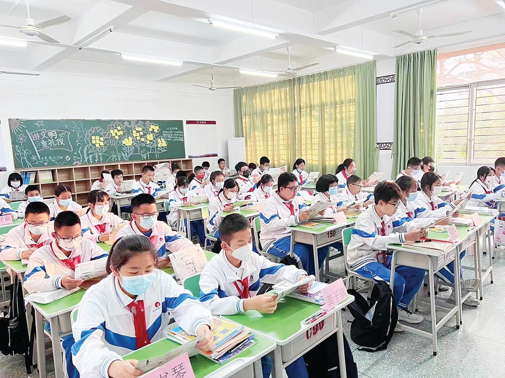 為實(shí)現(xiàn)潛移默化、潤(rùn)物無聲的效果,學(xué)校不斷豐富學(xué)習(xí)載體,通過評(píng)選“文明班級(jí)”“三好學(xué)生”“優(yōu)秀班干部”等稱號(hào),使學(xué)生學(xué)有榜樣,做有標(biāo)桿,促使學(xué)生形成良好思想品德;注重學(xué)生日常習(xí)慣的養(yǎng)成,以培育社會(huì)主義核心價(jià)值觀為主線,以愛國(guó)、責(zé)任、誠(chéng)信、樂學(xué)、合作為主要內(nèi)容,培養(yǎng)“文明、學(xué)習(xí)、衛(wèi)生、安全、生活、體藝”六大習(xí)慣,利用紀(jì)律教育月、專題講座、每周的年級(jí)例會(huì)、每周主題班會(huì)、每周學(xué)生檢查、問題反饋等形式,及時(shí)糾正學(xué)生不良行為;通過開展“憲法晨讀”“國(guó)旗下講話”主題教育等系列主題教育實(shí)踐活動(dòng),并將偉大建黨精神和抗疫精神、科學(xué)家精神、載人航天精神及生動(dòng)鮮活的實(shí)踐成就引入課堂,以提升學(xué)生的思想品德素養(yǎng)。