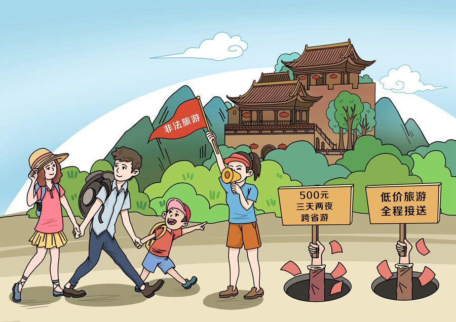 “不合理低價(jià)游”常常暗藏?fù)p害游客利益的陷阱。(漫畫(huà)制作:高雨潤(rùn))