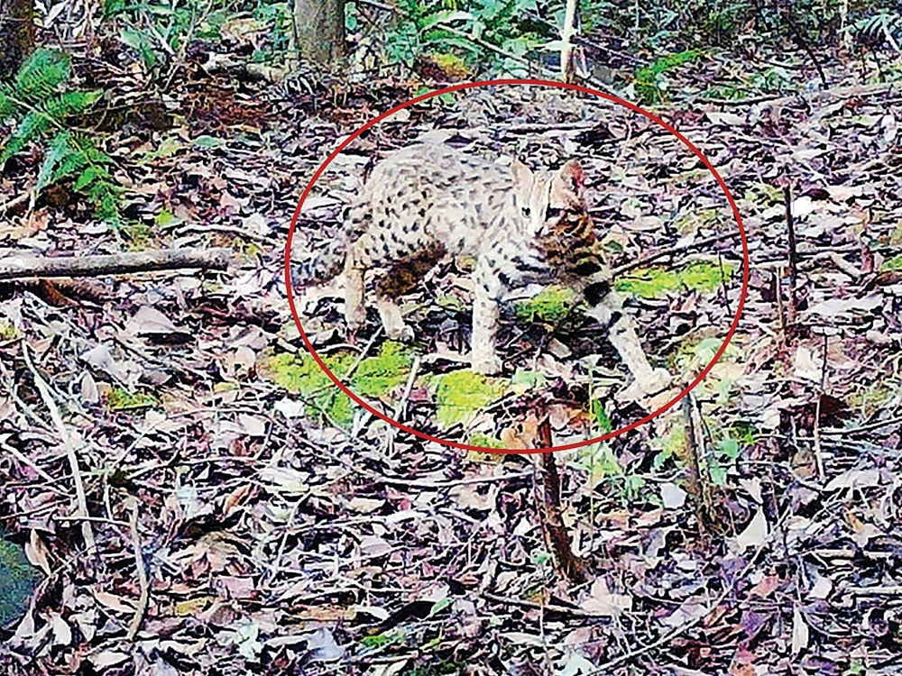 “看,這個鏡頭拍到的就是國家二級重點保護動物——豹貓。它們身上的斑點很像銅錢,因此也被稱為‘銅錢貓’!痹摫Wo區(qū)有關負責人指著紅外相機拍攝的素材介紹說,豹貓的體型與家貓相仿,但豹貓更加纖細,腿更長。它們喜歡獨居,善于攀爬和游泳。畫面中的豹貓十分矯健,在山地林區(qū)、郊野灌叢和林緣村寨附近行走和覓食。