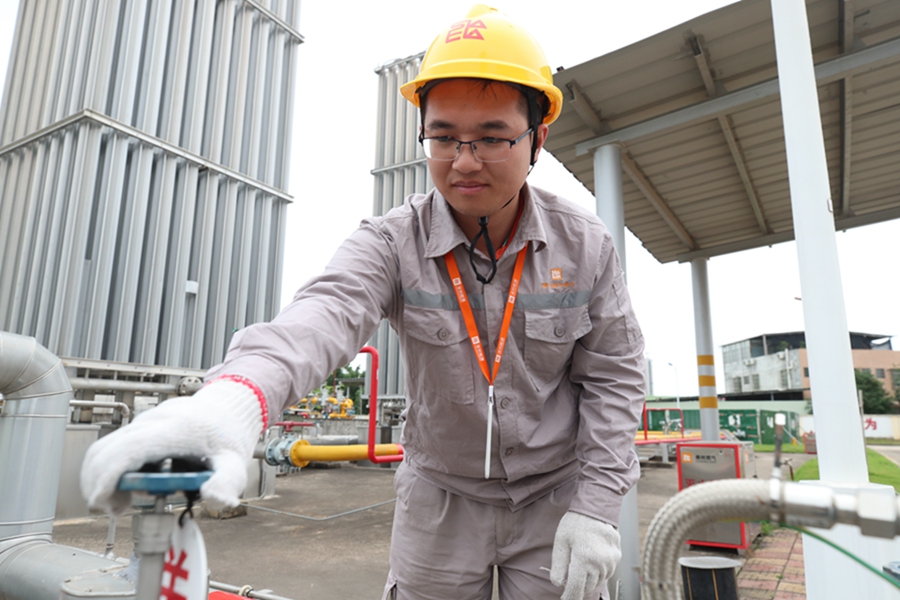 走進三棟多功能氣化站,各種設(shè)施設(shè)備齊全,封明浩正和同事們一起加班加點對設(shè)備進行最后調(diào)試,確保正式投產(chǎn)后可達到安全穩(wěn)定供氣要求。