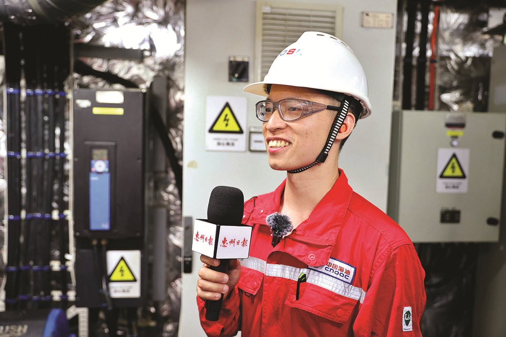 “國瑞”平臺配電房,設備主管向惠州日報記者介紹平臺設備。