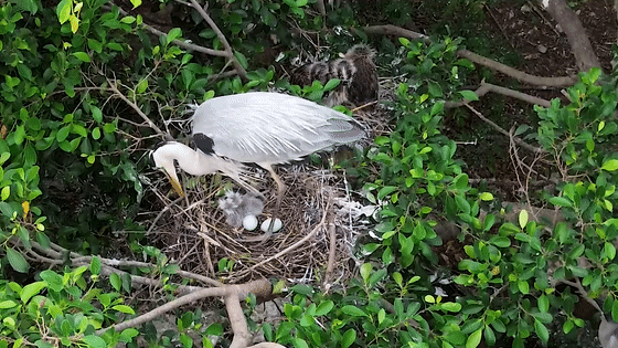 蒼鷺夫婦生出了兩個蛋。