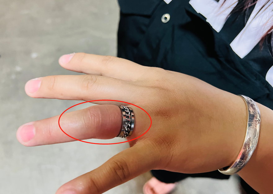 5月1日晚,一男一女焦急來到惠南消防救援站尋求幫助,經(jīng)了解得知,這對夫妻因"好玩",戴起了金屬戒指,不料女子手指被卡充血,采取多種方式嘗試都“無法自拔”,不得不求助消防。