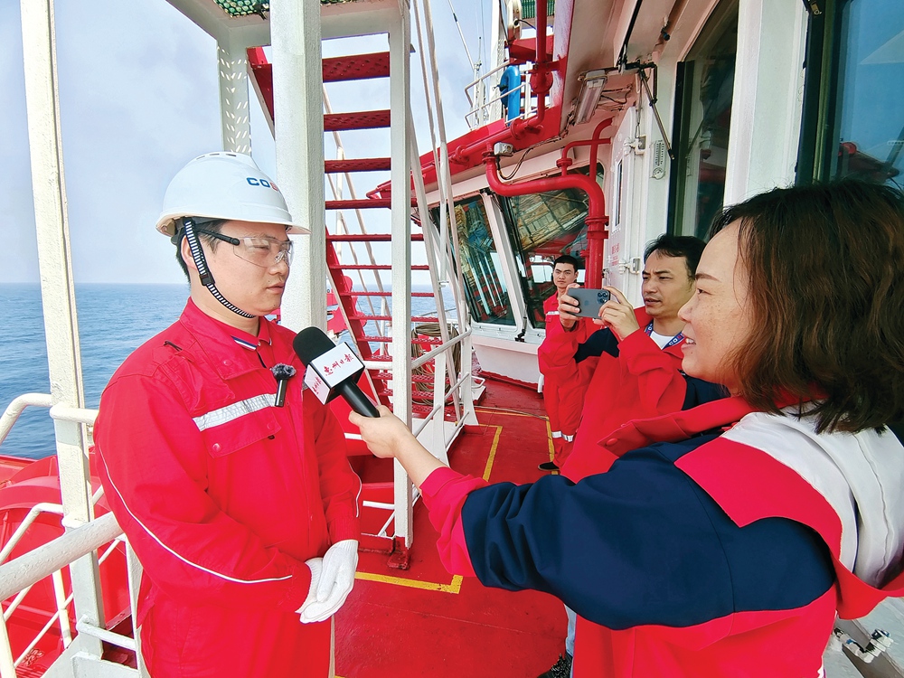 我是惠州日報社記者匡湘鄂。這次“惠報記者探秘中國南;葜萦吞铩比襟w采訪活動,惠州日報社派出的4名記者中,我是唯一一名女性,因此,我為這次報道活動創(chuàng)下了兩個第一:第一個登上中海油服旗艦船“海洋石油681”采訪的女記者,第一個登上“國瑞”鉆井平臺采訪的女記者。在我17年的記者生涯里,這是彌足珍貴的一次采訪體驗。