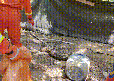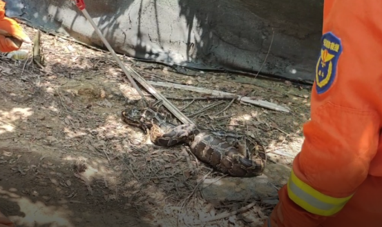 消防員立即與區(qū)公安分局、區(qū)自然資源局相關(guān)工作人員緊密配合:由公安部門維護(hù)現(xiàn)場(chǎng)秩序,消防員利用捕蛇器進(jìn)行抓捕,區(qū)自然資源局接收,共同完成抓捕任務(wù)。