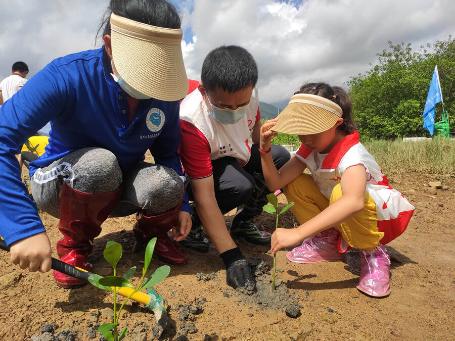 大亞灣志愿者在悉心呵護(hù)紅樹苗成長(zhǎng)。