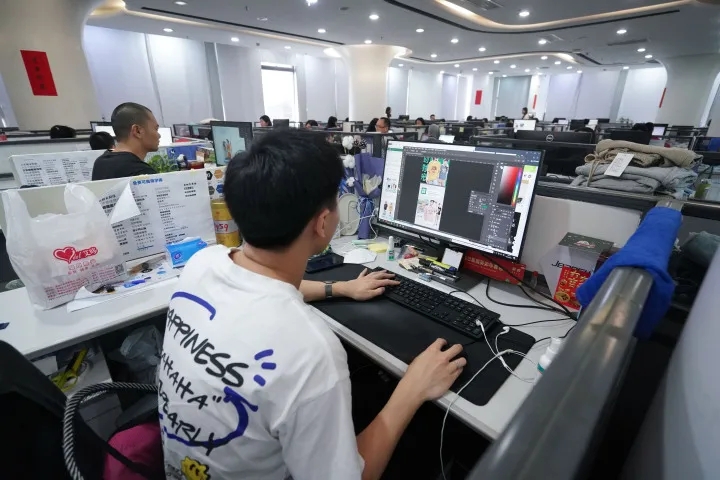 位于惠州江北的真維斯總部大樓,人、衣、數(shù)“交織”:直播間,年輕的主播正介紹新一季主打款式;電商部,秒變的數(shù)字實時顯示各平臺銷量……