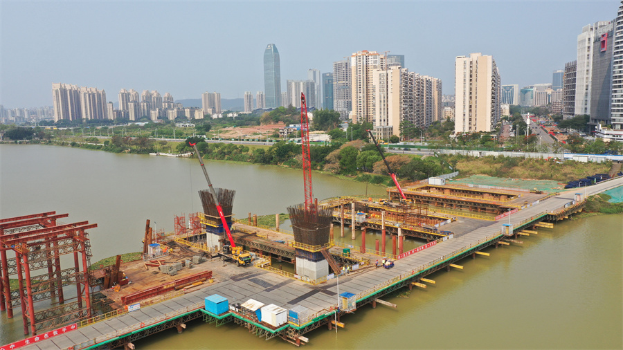 鵝城大橋 日前,鵝城大橋主橋樁基已全部完成;葜萑請笥浾咄踅 攝