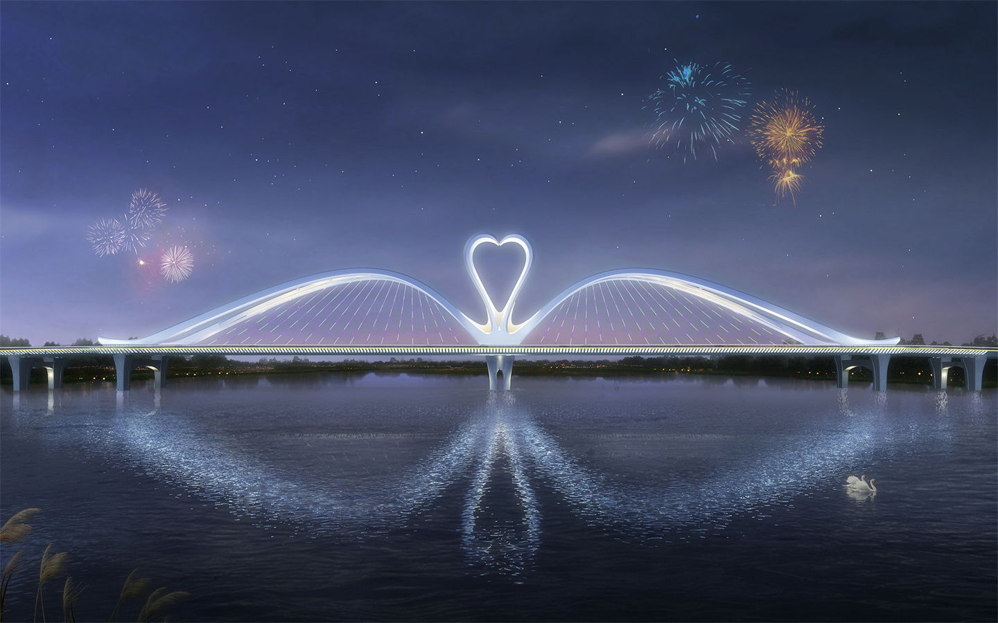 鵝城大橋以東江之“水”、惠州之“鵝”為主要元素,將“鵝城”的神話傳說及濃厚的地方人文特色融入橋梁結(jié)構(gòu)設(shè)計。這座兼具惠州人文風(fēng)貌與橋型美學(xué)結(jié)構(gòu)的大橋,建成后將以“天鵝之姿”矗立于東江之上。