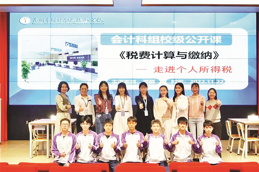 “中職教育不是終點,而是起點!被葜菔胸斀(jīng)職業(yè)技術(shù)學(xué)校胡斌教授說,學(xué)!叭侄巍豹毩⒕幇,在惠州財經(jīng)學(xué)校讀3年,通過轉(zhuǎn)段考試合格后,將在對口高職院校對應(yīng)專業(yè)學(xué)習(xí)2年。