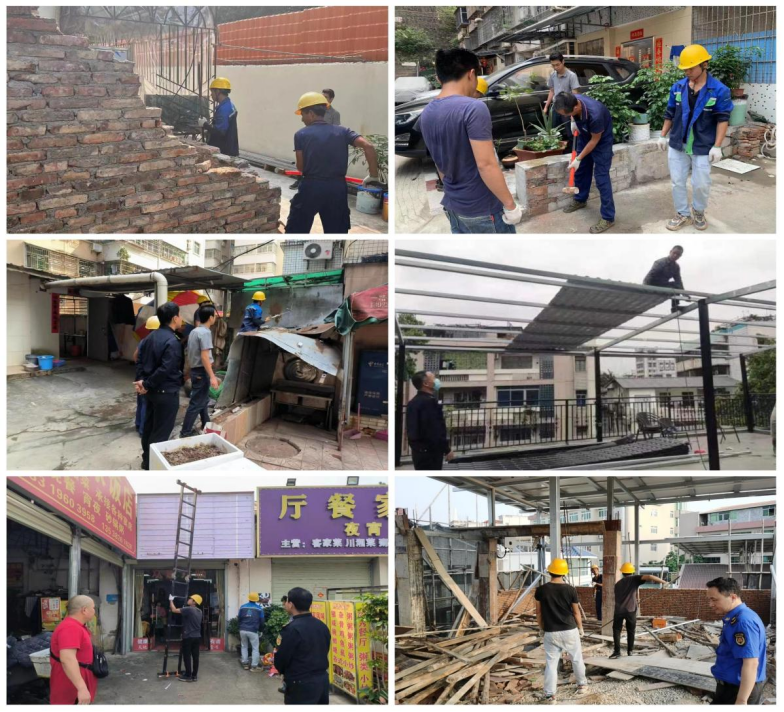 對(duì)江南街道范圍內(nèi)侵占城市公共空間的違章搭建物進(jìn)行拆除。