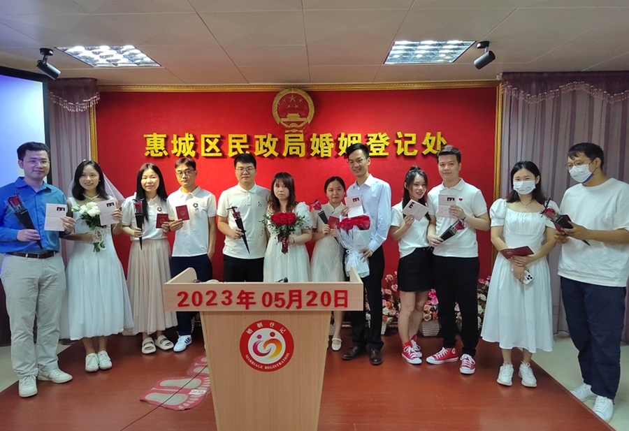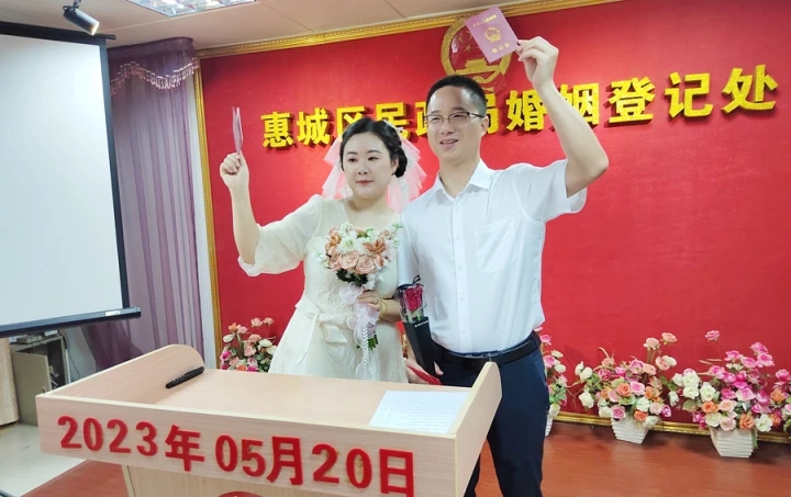 今年“5·20”恰逢周末,記者了解到,全市婚姻登記處“為愛(ài)加班”,當(dāng)天惠城區(qū)、惠陽(yáng)區(qū)、博羅縣等婚姻登記處為辦理婚姻登記的新人舉行新婚講座和集體頒證儀式,當(dāng)日開(kāi)放所有登記窗口,配足配齊婚姻登記員,全力保障廣大市民婚姻登記需求。
