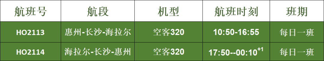 吉祥航空計劃6月16日起新增惠州=長沙=海拉爾航線,