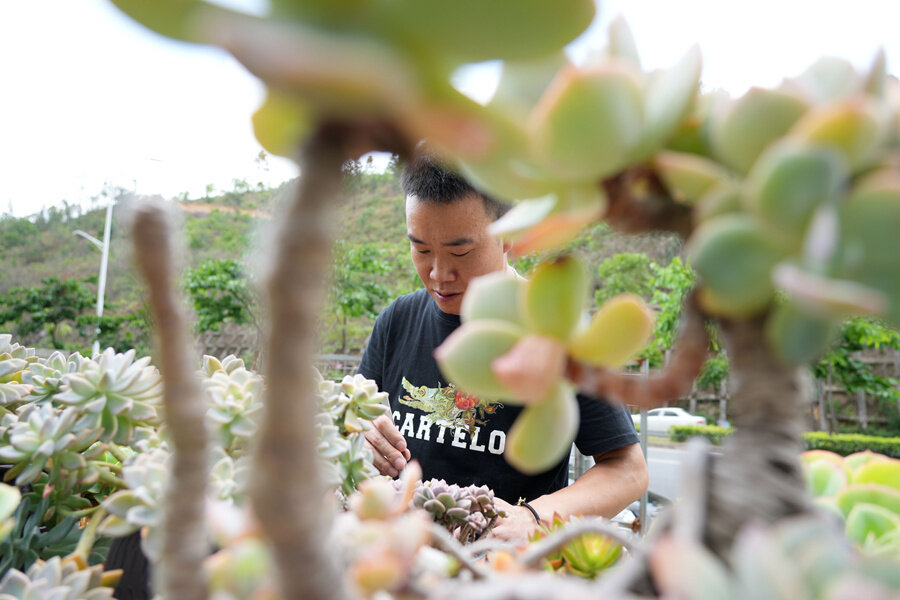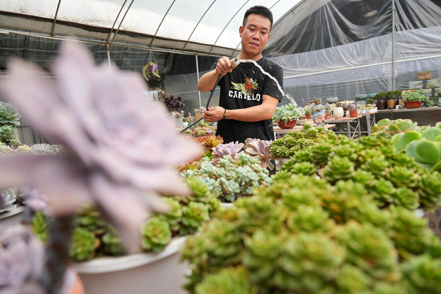 周逢平在給多肉澆水;葜萑請笥浾邨罱I(yè) 攝