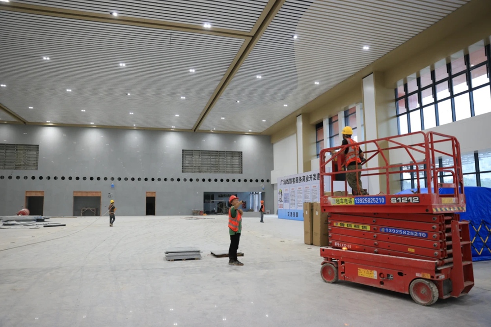 記者在現(xiàn)場看到,博羅站車站廣場綠化及照明工程已經(jīng)完成,進(jìn)出站市政道路的施工正在進(jìn)行,站房內(nèi)部裝修已進(jìn)入收尾階段!安┝_站站房主體結(jié)構(gòu)及屋面全部完成,內(nèi)裝完成97%,外幕墻完成97%,站臺(tái)主體結(jié)構(gòu)全部完成,站臺(tái)鋪裝完成98%,雨棚仿清水涂料完成98%!辈┝_站工區(qū)長范丞治介紹,目前正在進(jìn)行候車大廳的鋁板、燈具安裝和站臺(tái)格柵吊頂、玻璃欄板安裝。候車大廳的座椅已經(jīng)預(yù)定,閘機(jī)已經(jīng)進(jìn)場,即將進(jìn)行安裝。