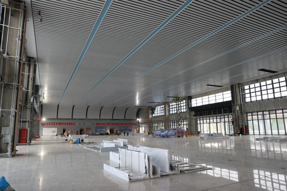 已經(jīng)進(jìn)入收尾工程的羅浮山站候車大廳。