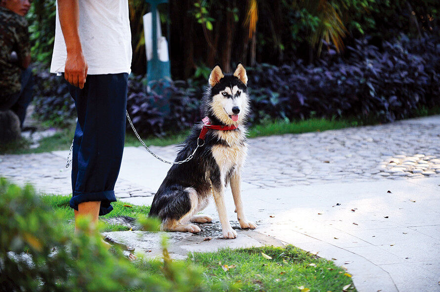 外出遛狗最好給狗戴上嘴罩。 惠州東江圖片社供圖