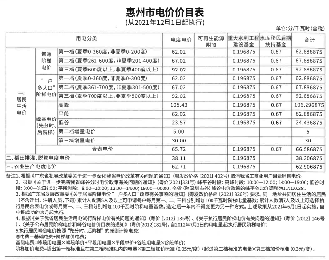 居民(含執(zhí)行居民電價(jià)的學(xué)校、社會(huì)福利機(jī)構(gòu)、社區(qū)服務(wù)中心等公益性事業(yè)用戶)、農(nóng)業(yè)用電由電網(wǎng)企業(yè)保障供應(yīng),執(zhí)行現(xiàn)行目錄銷售電價(jià)政策和標(biāo)準(zhǔn)(具體詳見《惠州市電價(jià)價(jià)目表》)。