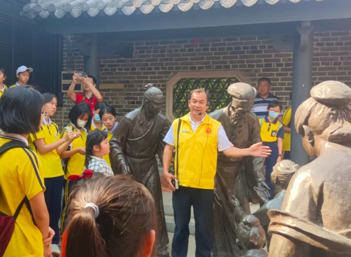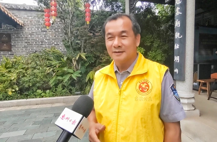 穿上物業(yè)公司配發(fā)的保安服,他是惠州蘇東坡祠(以下簡稱“東坡祠”)的一名保安;換上“黃馬甲”,他是惠州市東坡公益志愿服務隊隊長。他本職工作是維護景區(qū)秩序,卻“不務正業(yè)”,做起了義務講解員,表演節(jié)目、吟唱詩詞,盡顯東坡“迷弟”本色。