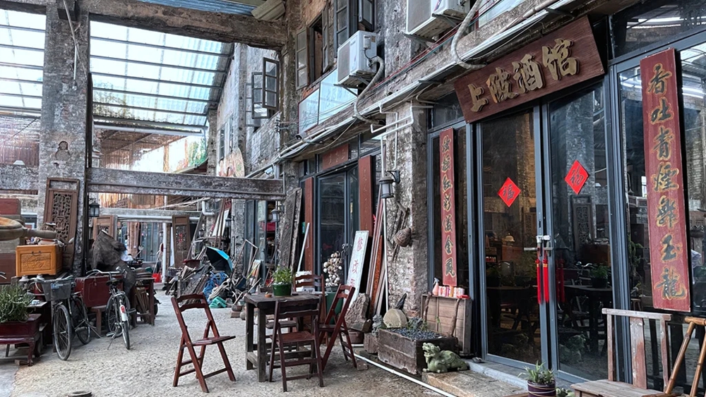 “潛珍閣”利用老船廠遺留的柱、梁、建筑基礎(chǔ)打造成新的公共空間,輪機(jī)車間成為了品茗交流之處,鑄造車間變成了工藝品展覽室——鍋碗瓢盆、桌椅板凳床、琴棋書畫、炊具農(nóng)具,各式小家電,還有花轎、食格、盒籮等惠州民間舊式婚嫁習(xí)俗物品等,各種各樣的老物件,看似雜亂堆疊實(shí)則頗有心思組合,令人目不暇接。市民游客穿行其中,每個(gè)人都能在這里找到有關(guān)童年、成長(zhǎng)的打開方式。這里經(jīng)常有收藏“發(fā)燒友”來(lái)交流,也吸引了不少文化人士來(lái)參觀。
