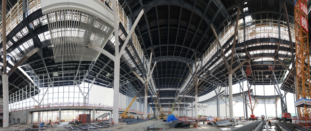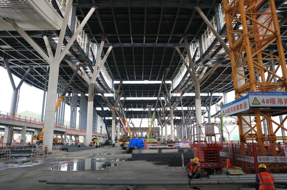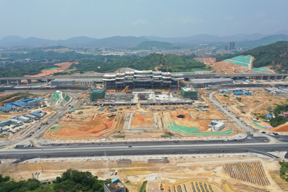 廣汕鐵路惠城南站站房施工現(xiàn)場(chǎng)外景。