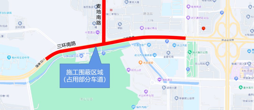 將圍蔽占用三環(huán)南路、麥地南路部分