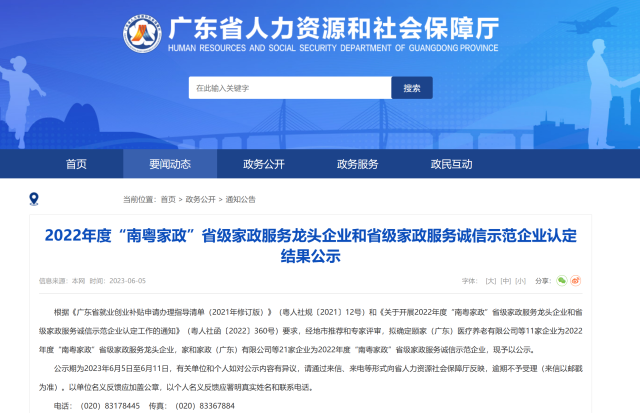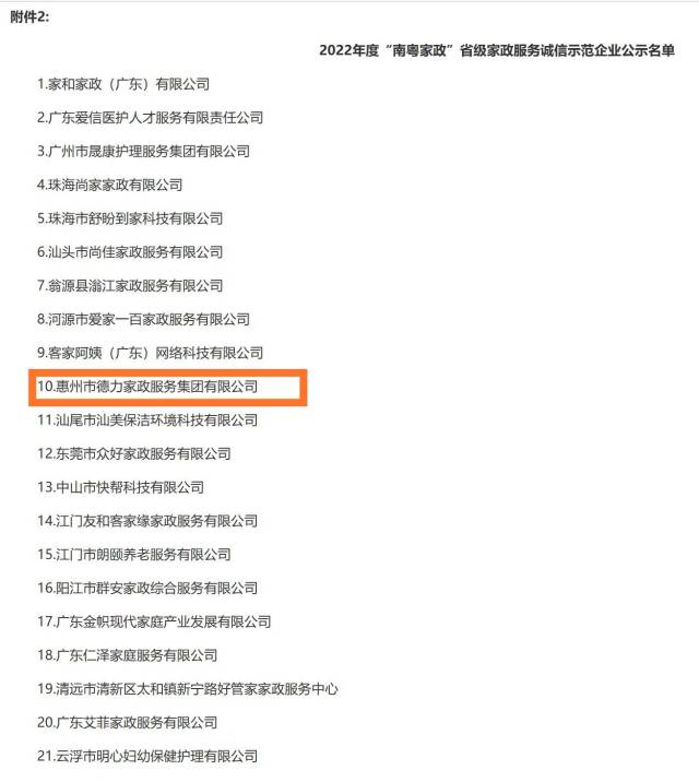 近日,記者從廣東省人力資源和社會保障廳獲悉,2022年度“南粵家政”省級家政服務(wù)龍頭企業(yè)和省級家政服務(wù)誠信示范企業(yè)認定結(jié)果出爐。其中,惠州市德力家政服務(wù)集團有限公司入選2022年度“南粵家政”省級家政服務(wù)誠信示范企業(yè)。