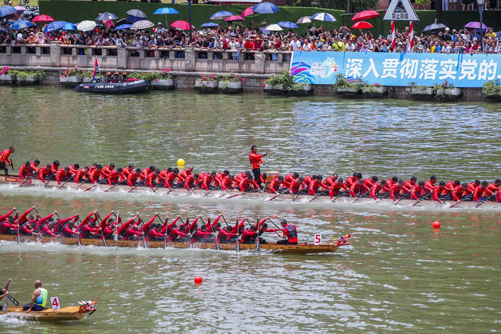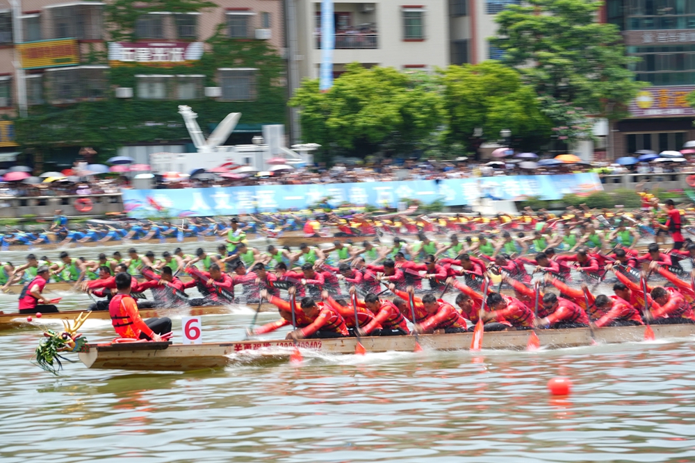 啟動儀式后,激動人心的粵港澳大灣區(qū)(廣東)龍舟邀請賽暨東莞龍舟錦標賽在東莞沙田水道舉行。來自粵港澳的18支男女混合龍舟隊,東莞水鄉(xiāng)沿海鎮(zhèn)街的10支男子傳統(tǒng)龍舟隊,以及12支沙田男、女子組龍舟隊同江競渡,全面展示龍舟文化的獨特魅力,凸顯“人文灣區(qū),一水同舟;萬眾一心,賽龍奪錦”的人文精神,彰顯大灣區(qū)一家親,攜手共進、奮勇向前的高質(zhì)量發(fā)展態(tài)勢。