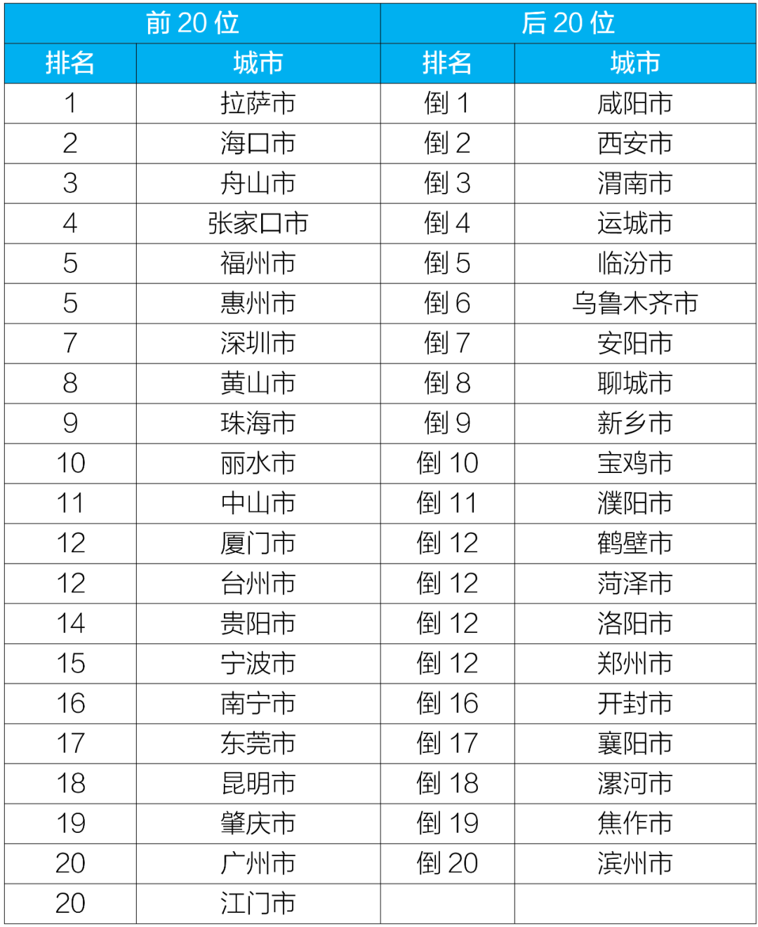 空氣質(zhì)量排名前20位;