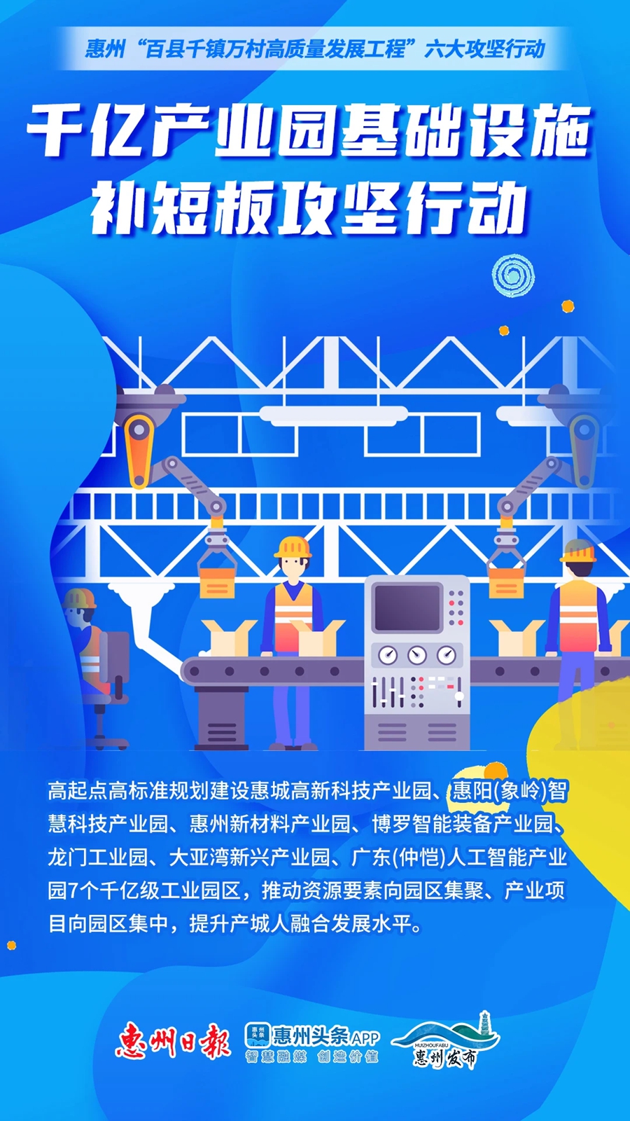 根據(jù)《實(shí)施方案》,我市全力支持惠城區(qū)著力提升中心城區(qū)能級(jí),打造一流中心區(qū);支持惠陽區(qū)打造深莞惠協(xié)同發(fā)展“橋頭堡”,建設(shè)好“智造高地·活力惠陽”;支持惠東縣推動(dòng)山水林田湖海聯(lián)動(dòng)發(fā)展,打造高質(zhì)量發(fā)展的山海之城,重回全國百強(qiáng)縣行列;支持博羅縣加快建設(shè)“縣強(qiáng)、民富、景美、人和”的現(xiàn)代魅力強(qiáng)縣,全國百強(qiáng)縣位次進(jìn)一步提升,打造千億級(jí)經(jīng)濟(jì)強(qiáng)縣;支持龍門縣建設(shè)綠色發(fā)展美麗幸福示范縣;支持大亞灣開發(fā)區(qū)加快打造世界級(jí)綠色石化產(chǎn)業(yè)高地,建設(shè)國內(nèi)一流開發(fā)區(qū);支持仲愷高新區(qū)打造具有全球競爭力的電子信息產(chǎn)業(yè)集群,建設(shè)國內(nèi)一流高新區(qū)。