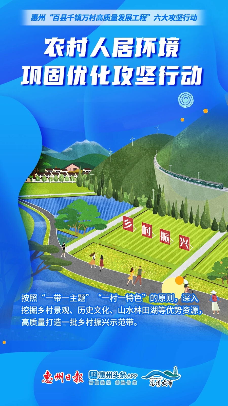 “壹引其綱,萬目皆張!3月22日,《惠州市關(guān)于全面推進(jìn)“百縣千鎮(zhèn)萬村高質(zhì)量發(fā)展工程”促進(jìn)城鄉(xiāng)區(qū)域協(xié)調(diào)發(fā)展的實(shí)施方案》(以下簡稱“《實(shí)施方案》”)正式印發(fā)!秾(shí)施方案》提出,以全市7個(gè)縣(區(qū))76個(gè)鄉(xiāng)鎮(zhèn)(街道)1333個(gè)行政村(社區(qū))為主體,貫徹落實(shí)好省委“百千萬工程”各項(xiàng)部署,實(shí)現(xiàn)“一年開局起步、三年初見成效、五年顯著變化、十年根本改變”的目標(biāo)。