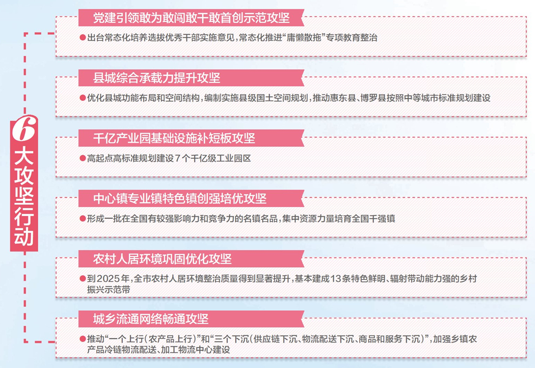 成立5個(gè)專班、實(shí)施六大攻堅(jiān)行動(dòng)、深入基層開展調(diào)研……今年以來,惠州深入學(xué)習(xí)貫徹習(xí)近平總書記視察廣東重要講話、重要指示精神,全面落實(shí)省委工作部署,舉全市之力高標(biāo)準(zhǔn)推進(jìn)“百千萬工程”各項(xiàng)工作,實(shí)現(xiàn)快速起步和良好開局。