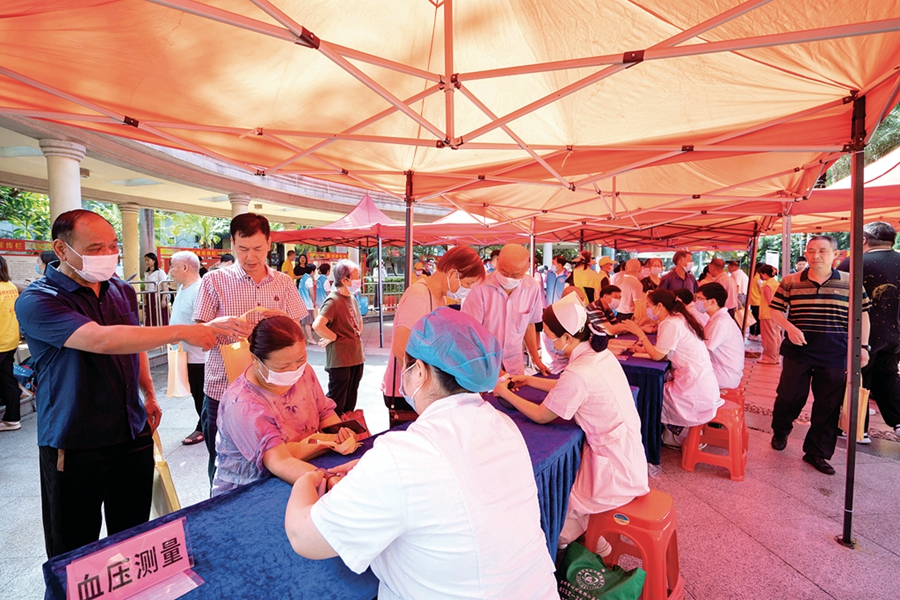 “阿叔,請(qǐng)問您有什么健康問題需要咨詢?”“來(lái)這邊,我給您檢查一下!薄莩菂^(qū)橋西黨建文化廣場(chǎng)作為活動(dòng)主會(huì)場(chǎng),很快吸引了一大批社區(qū)群眾和退役軍人及家屬前來(lái)咨詢和問診。其他六個(gè)分會(huì)場(chǎng)醫(yī)療義診活動(dòng)也得到了社區(qū)群眾的歡迎和普遍好評(píng)。據(jù)統(tǒng)計(jì),共有1500多名群眾參加義診,進(jìn)一步提高了自身的健康意識(shí);葜菔械诙嗣襻t(yī)院、中信惠州醫(yī)院、惠州市種德慈善會(huì)、方舟健康體檢、李飛口腔門診部、愛爾眼科及各縣(區(qū))相關(guān)醫(yī)療機(jī)構(gòu)80多名醫(yī)護(hù)人員志愿者和68名戰(zhàn)旗志愿服務(wù)隊(duì)隊(duì)員參加活動(dòng)。