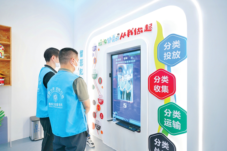 市民在市生活垃圾分類科普館參觀體驗;葜萑請笥浾咧荛 攝