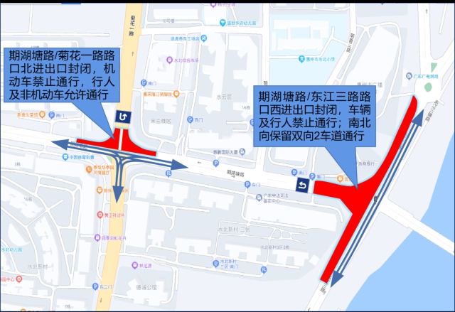 期湖塘路部分路口機(jī)動(dòng)車及行人禁行