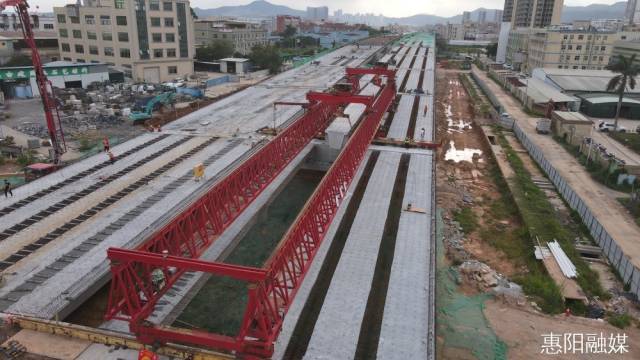 為確保架設(shè)過程安全順利,深莞惠紅色干線項(xiàng)目部啟用技術(shù)熟練施工人員,強(qiáng)化機(jī)械設(shè)備安全維護(hù),對(duì)各項(xiàng)工序嚴(yán)格把控,多次組織施工班組進(jìn)行技術(shù)交底,從施工組織、人員安排、箱梁運(yùn)輸、架橋機(jī)過孔、箱梁架設(shè)等方面做了周密部署,保障全線最后一片箱梁架設(shè)完美收官。