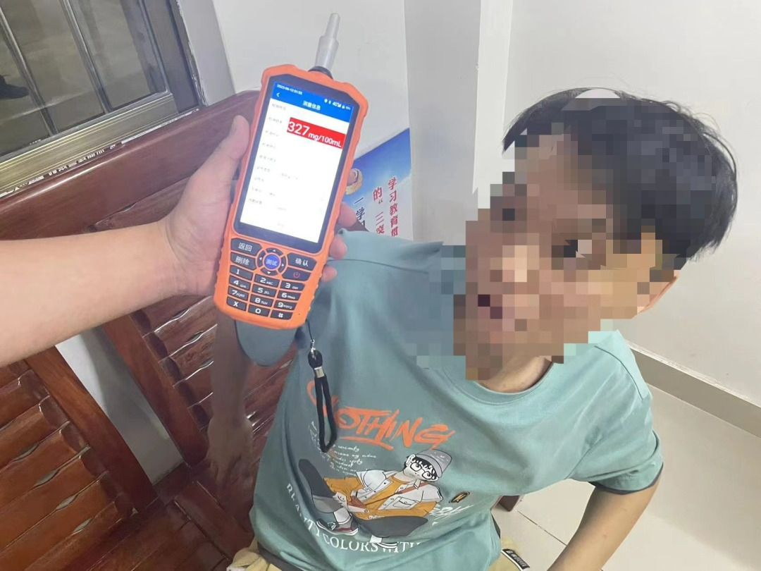 民警迅速上前查看駕駛?cè)擞袩o(wú)受傷,發(fā)現(xiàn)駕駛?cè)藙⒛尘莆稘饬遥響B(tài)明顯。詢問(wèn)其是否喝酒時(shí),劉某立即連連否認(rèn):“我沒(méi)喝酒,不要冤枉我!苯(jīng)呼氣酒精測(cè)試,其呼氣酒精濃度值為327mg/100ml,已達(dá)醉酒駕駛標(biāo)準(zhǔn),但在事實(shí)面前,劉某還試圖狡辯并拒絕血液檢測(cè)。