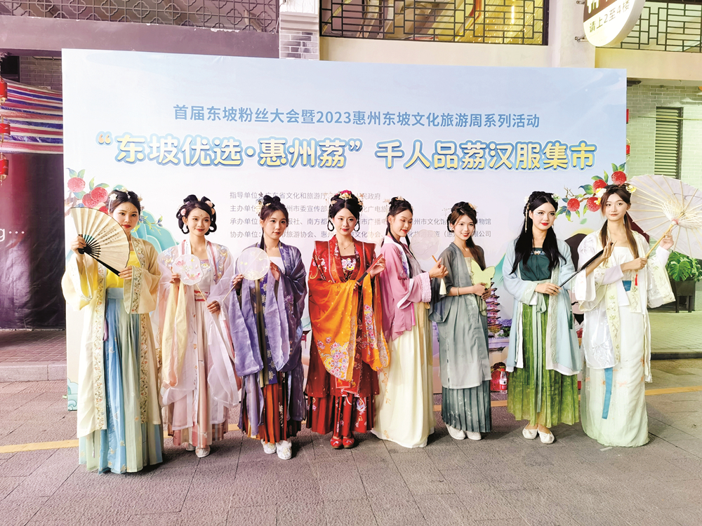 在水東街,市民則開啟了打卡東坡美食文化之旅。分會場的“千人同品東坡荔”暨漢服集市活動,以“佳人相見一千年”為主題,將惠州手信與荔枝成熟季相結(jié)合,以東坡荔枝、惠州手信、東坡文創(chuàng)潮玩為賣點,可以說囊括了“吃喝玩樂”各個維度。