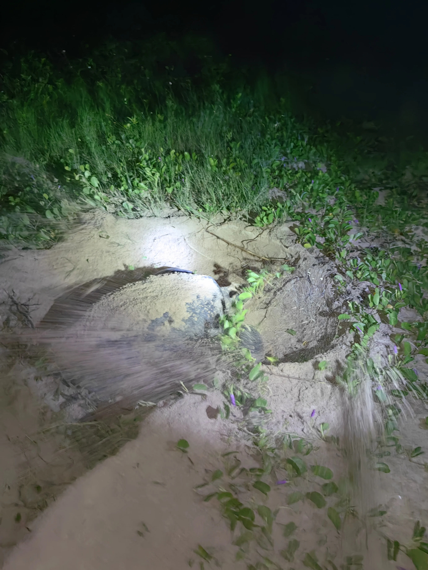 “這已經(jīng)是她今年第三次上岸了。因為前兩次她都來得比較晚,均沒有發(fā)現(xiàn)她的真面目。”保護(hù)區(qū)工作人員介紹,這一次他們算準(zhǔn)了時間,根據(jù)海龜前兩次選擇下半夜上岸的特點,經(jīng)過幾天來的通宵達(dá)旦,最終等來她的第三次上岸,并親自目睹了她的真容,該母海龜長99.6cm,寬91.1cm,目測有120多公斤。