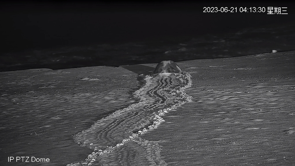 6月21日凌晨1時30分許,廣東惠東海龜國家級自然保護(hù)區(qū)的賊奧沙灘上,迎來今年第一只野生成年母海龜上岸產(chǎn)卵。