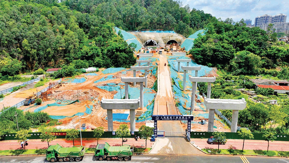 南山快速路工程正在開(kāi)展3座隧道、2座橋梁、三環(huán)交叉節(jié)點(diǎn)施工。 惠州日?qǐng)?bào)記者李松權(quán) 攝
