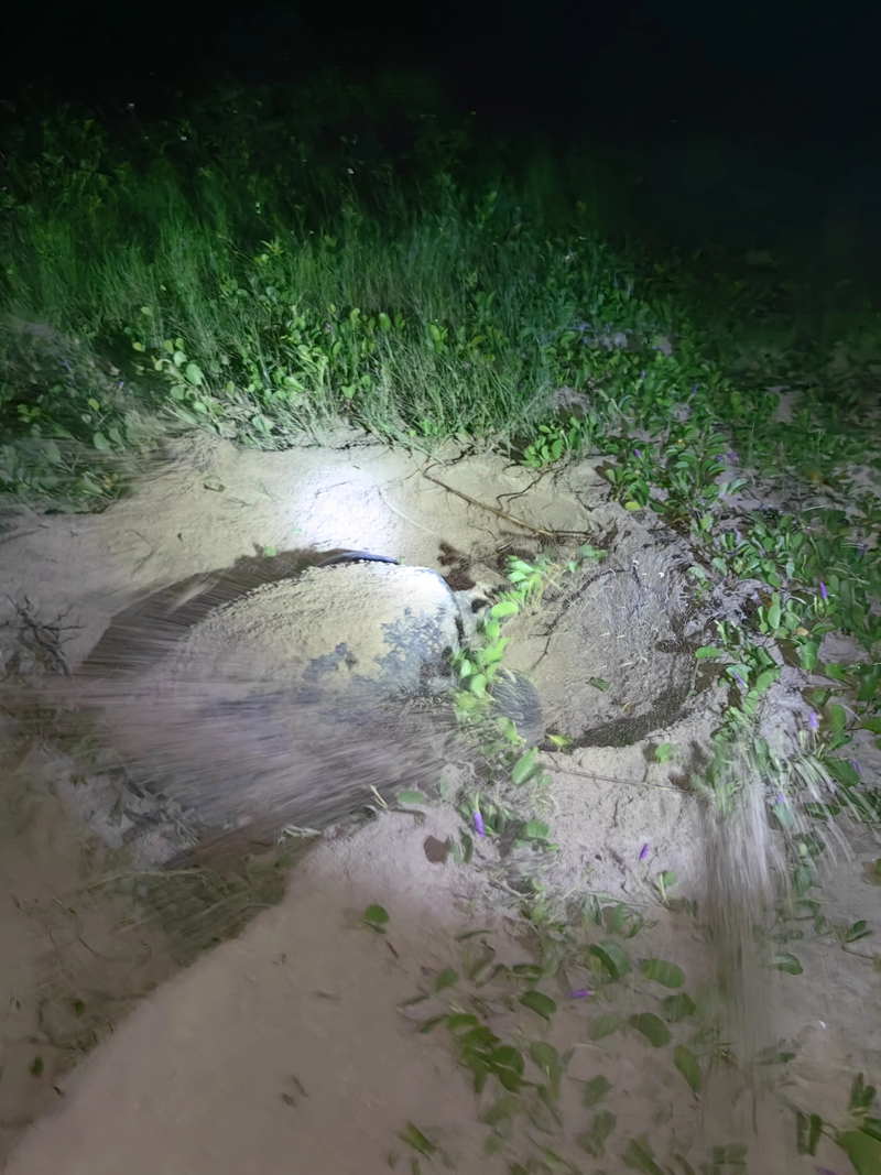 “這是她今年第三次上岸了,前兩次來得都比較晚,我們都沒有看見她的真面目!睆V東惠東海龜國家級自然保護區(qū)技術員李滿文介紹,這次他們算準了時間,根據(jù)海龜前兩次選擇下半夜上岸的特點,經(jīng)過幾天來的通宵等待,最終等來她的第三次上岸,并目睹了她的真容。這只母海龜長99.6厘米,寬91.1厘米,目測有120多公斤。