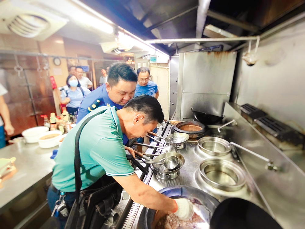 燃?xì)鈱<以跈z查餐廳的廚房的燃?xì)庠罴盃t灶。 惠州日?qǐng)?bào)記者 朱金贊 攝