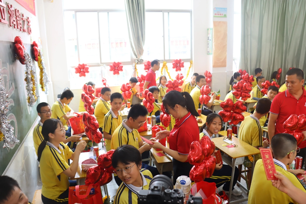 惠州市惠臺學(xué)校老師為考生送上寫有“中考必勝”“金榜題名”的紅包。